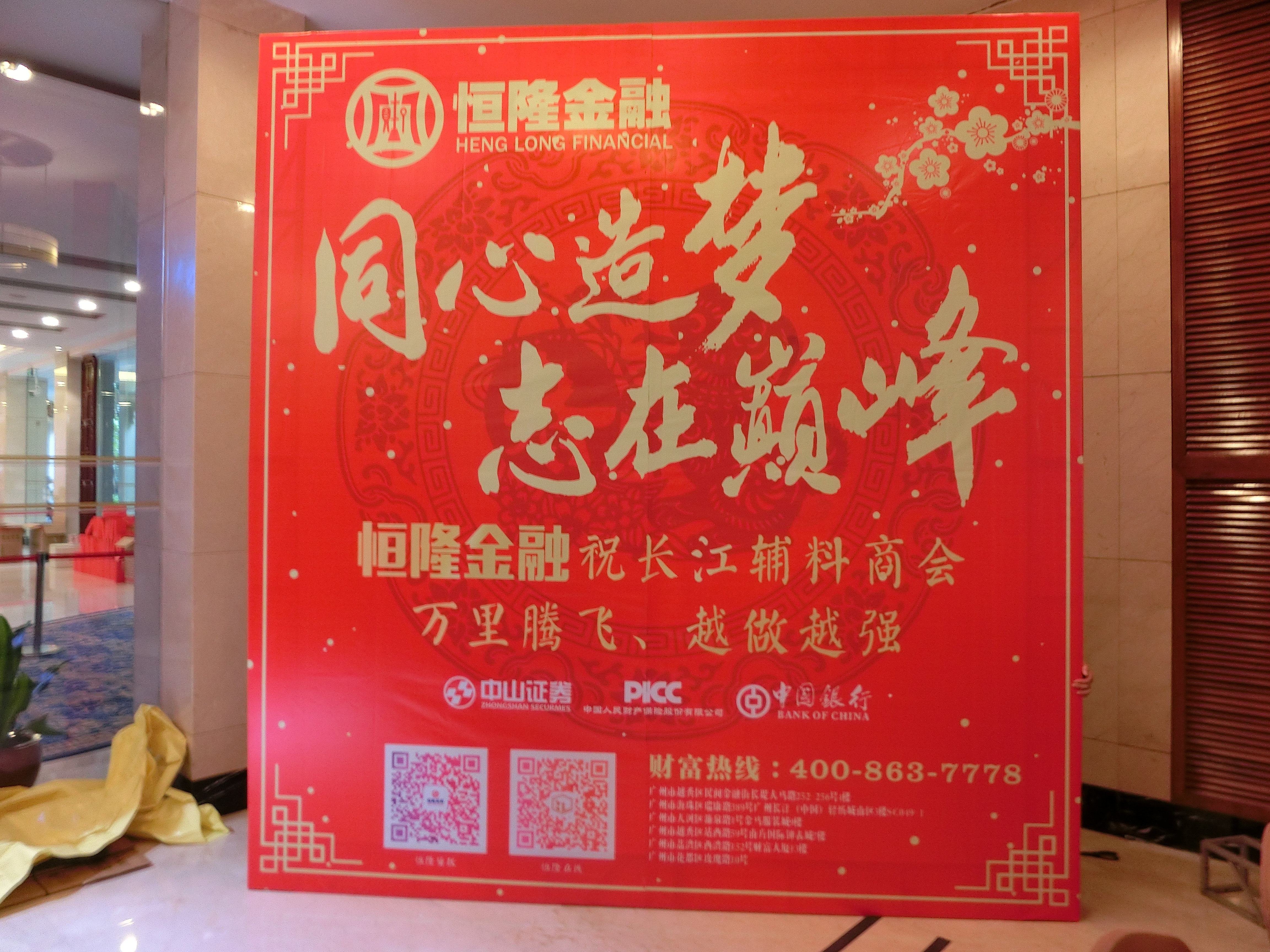 会前,各项准备工作已有序地安排进行。恒隆金融显而易见的广告布置为当晚商会晚会增添了几分亮丽的色彩。