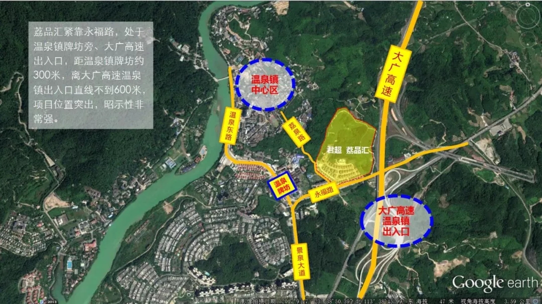 荔品汇项目位于从化区温泉镇荔泉路28号(原温泉中学校址),大广高速温泉出口,温泉镇中心,出则繁华,入则宁静。繁华在左,便捷在右,交通便利。