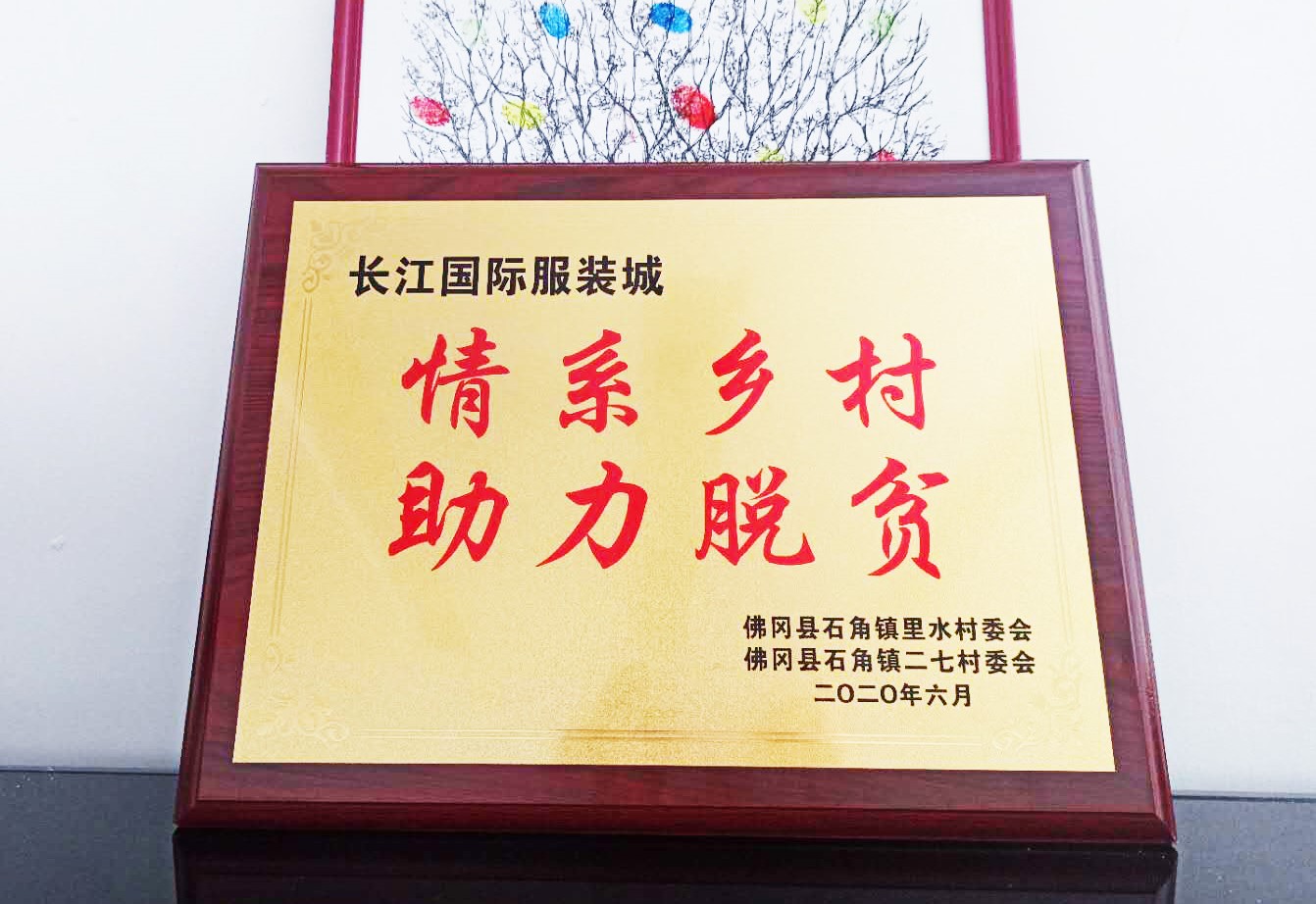据了解,这块牌匾由广东省清远市佛冈县石角镇里水村和二七村委会所赠,上书“情系乡村,助力脱贫”,寥寥数字,承载了村民满满的感激之情。余会长亦当场赞扬君杰集团和长江国际服装城慷慨助力广东省扶贫济困事业,十分有社会担当。