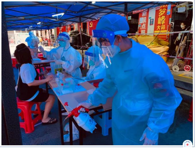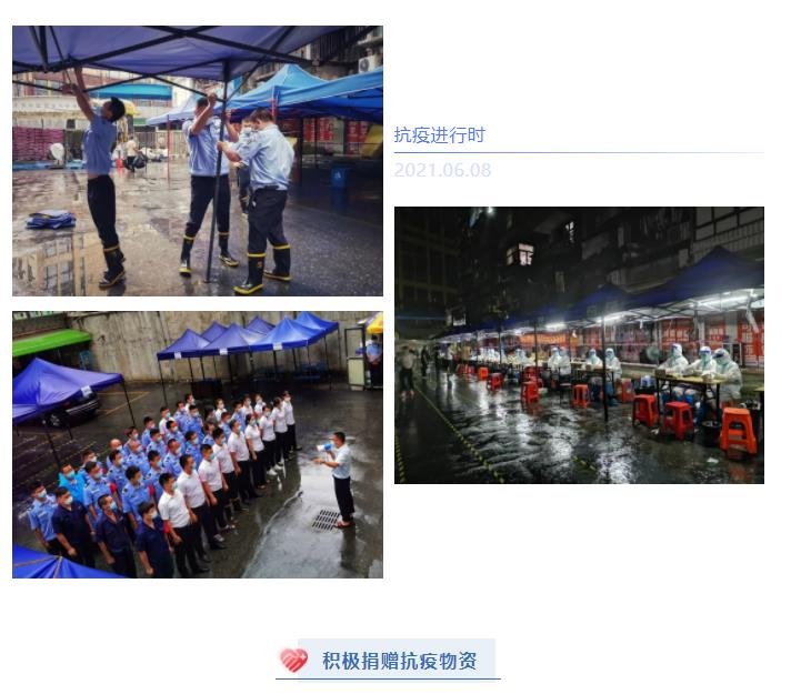 各市场第一时间提供核酸检测场地并协助搭建,出动大批安保队伍协助维护现场秩序,组织员工成立“抗疫先锋队”为医务人员提供后勤保障服务……