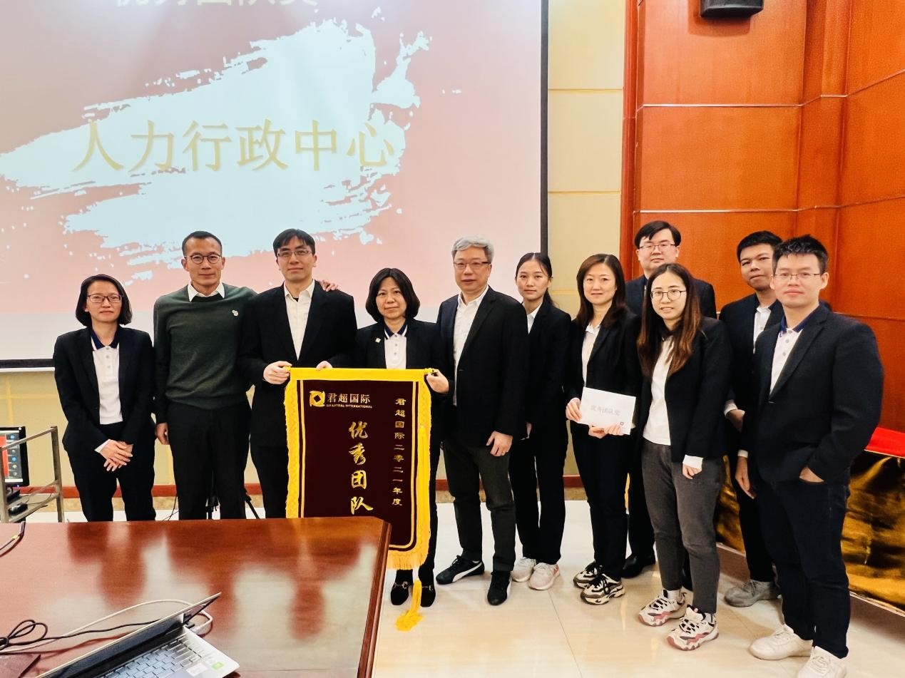 2022年1月21日,君超集团总部2021年度工作总结暨2022年度工作计划及表彰大会在总部9楼会议室召开,君超集团各位董事、总裁、副总裁、各中心总监及总部全体员工参加了本次会议。