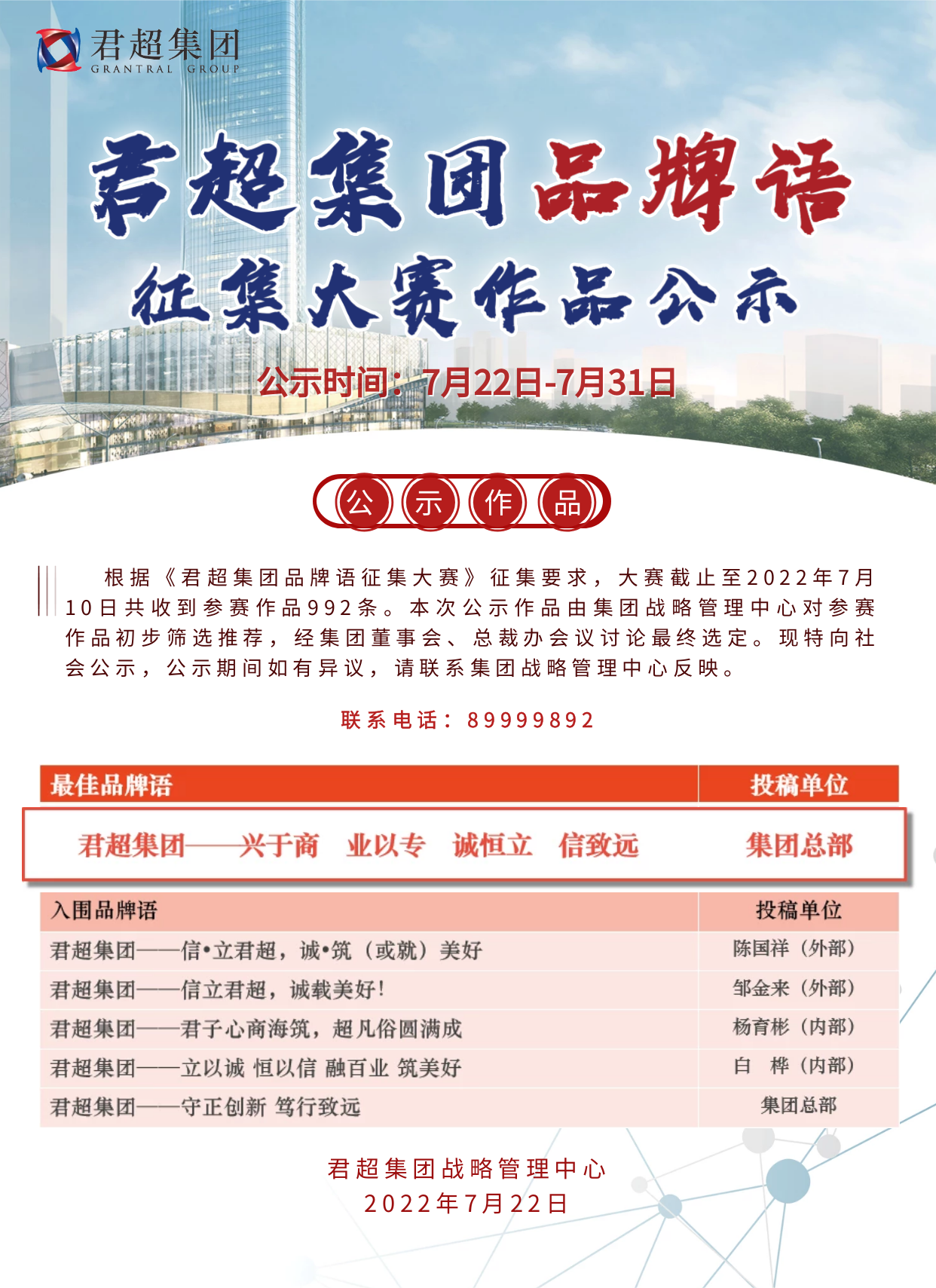 君超集团品牌语征集大赛作品公示