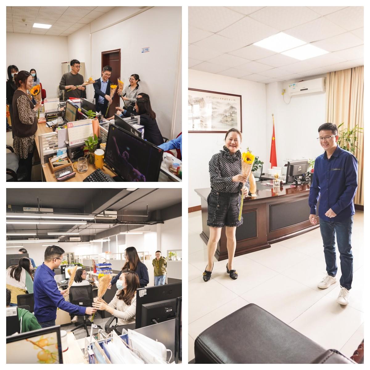 为每位女神派送代表“阳光与活力”的向日葵,女同事们收到鲜花后